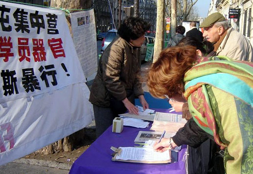 游客们和巴黎民众听到揭露中共苏家屯集中营的迫害真相和紧急呼吁后,都说:太残忍了,中共真恶毒,杀人魔鬼才干的事。了解真相的人们踊跃签名表达他们对正义的支持和对罪恶的愤慨,紧急营救身陷中共集中营的法轮功学员。