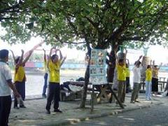 ![]() 2001年国际童玩节冬山河亲水公园功法表演 | ![]() 2004年国际童玩艺术节 炼功讲真相 |