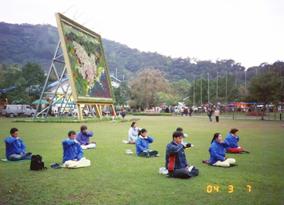 ![]() 2004年5月9日宜兰法轮功学员受邀在苏澳荣民医院的院庆园游会表演功法 | ![]() 2004年宜兰绿色博览会炼功洪法 |