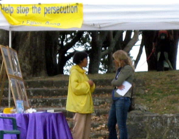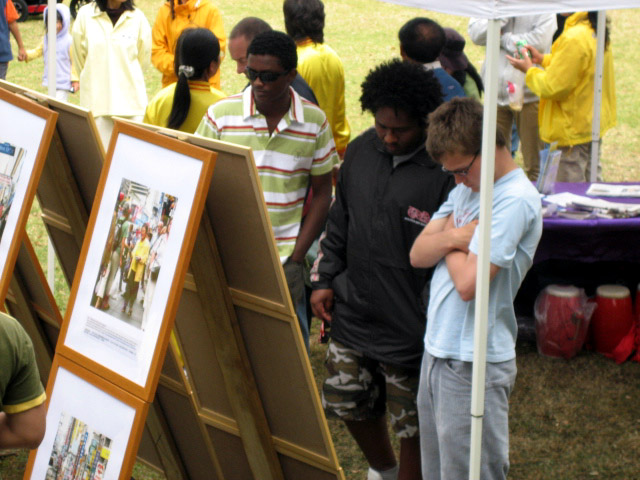 展现法轮功真相的摄影展吸引了一批又一批的人驻足观看。摄影展包含了两部份内容,法轮大法的美好和法轮功修炼者在中国遭受迫害的惨烈。游人问的最多的问题是:“中共为什么迫害法轮功?”
