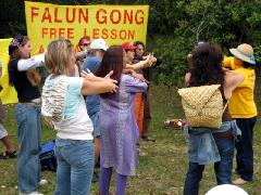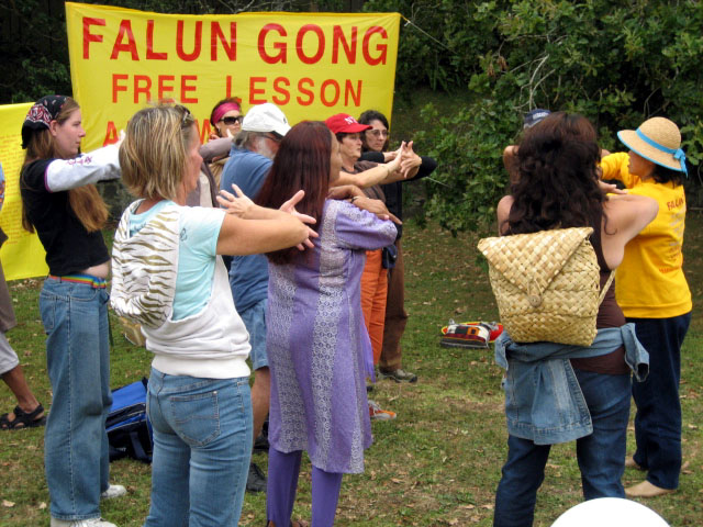![]() 许多人在文化节上学炼法轮功 |