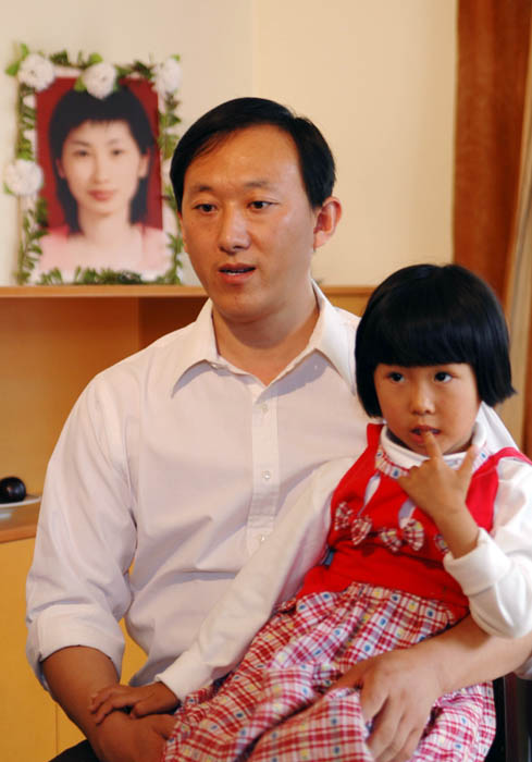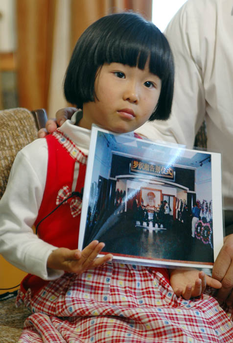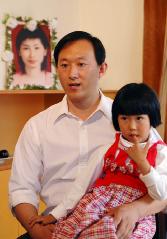 ![]() 黄国华父女以亲身经历揭露迫害 | ![]() 黄颖抱着妈妈追悼会的照片 |