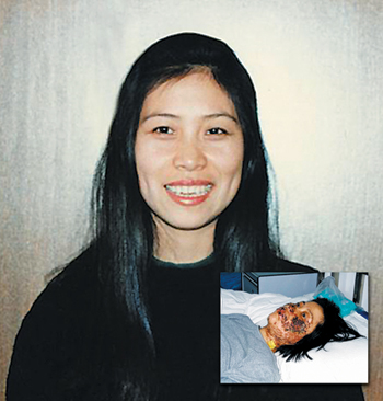 ![]() 法轮功学员高蓉蓉受到7小时的酷刑折磨,脸部被毁容。2005年6月16日被迫害致死。 |