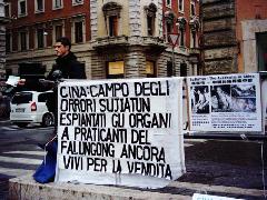 【明慧网2006年4月1日】当苏家屯集中营曝光后,罗马法轮功学员于3月份多次到中共驻罗马大使馆和意大利总理府前揭露这一恶性事件,谴责中共灭绝人性,非法秘密关押法轮功学员,并活体摘取人体器官的罪行。