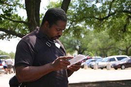 一位美国青年听完学员介绍中共集中营之后,他说:“我知道在中国,中共不让人民有信仰的权利,基督教在中国是受到迫害的,但是,我听到摘除法轮功学员活体器官仍然非常吃惊。我支持你们。”他与学员交谈了很久,临走前还签名支持法轮功学员。