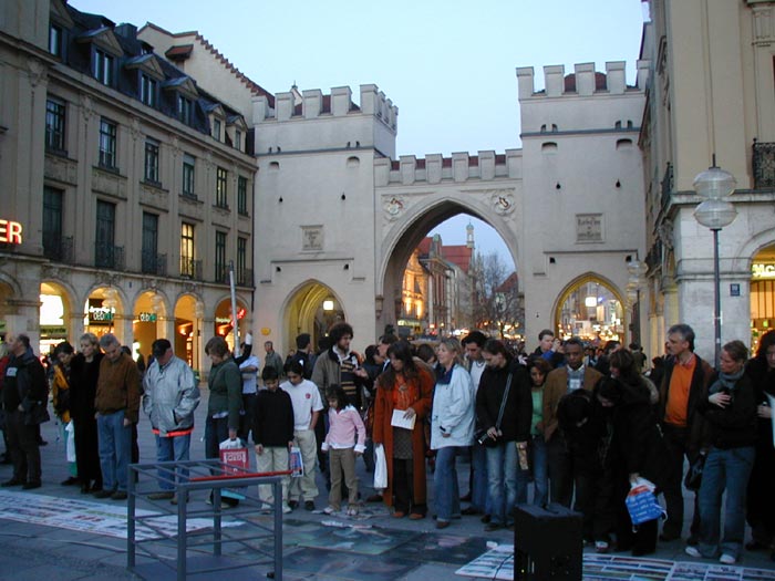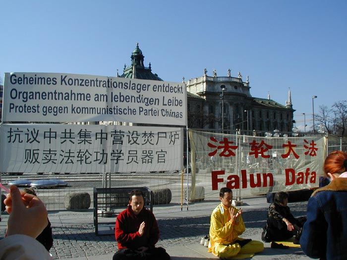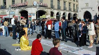 2006年4月8日,法轮功学员在德国南部最大的城市慕尼黑卡尔斯广场(Karlsplatz)举办活动,紧急呼吁全社会关注在中共集中营被非法关押的法轮功学员的命运。