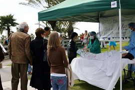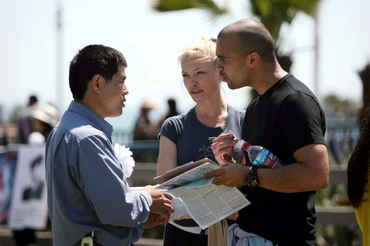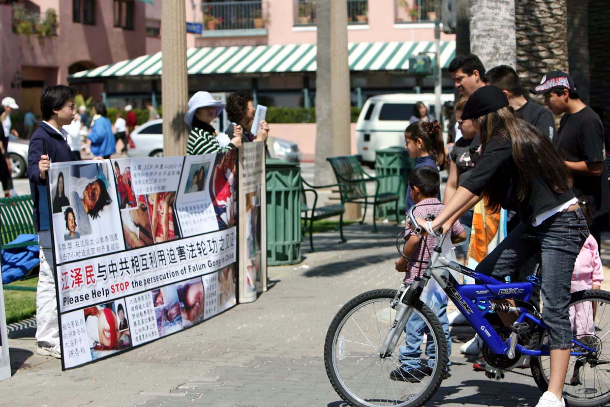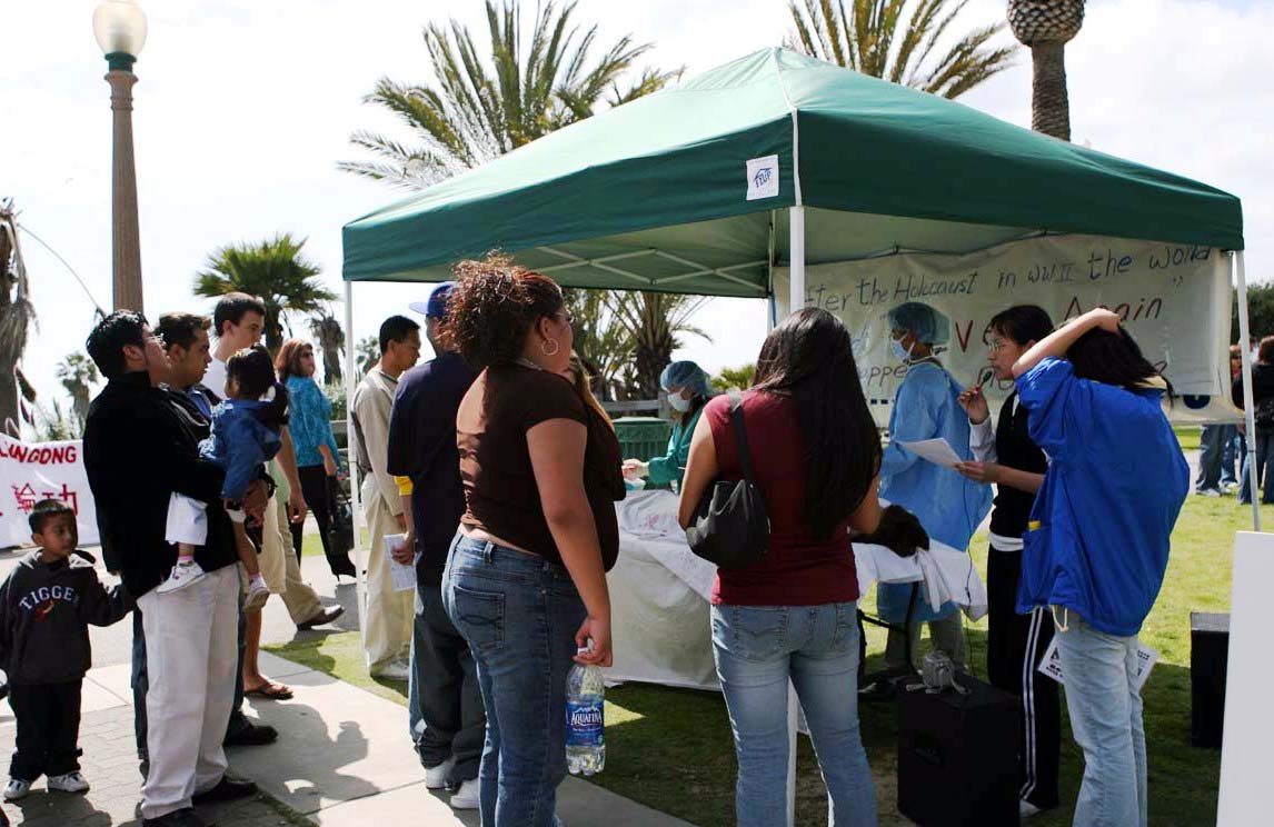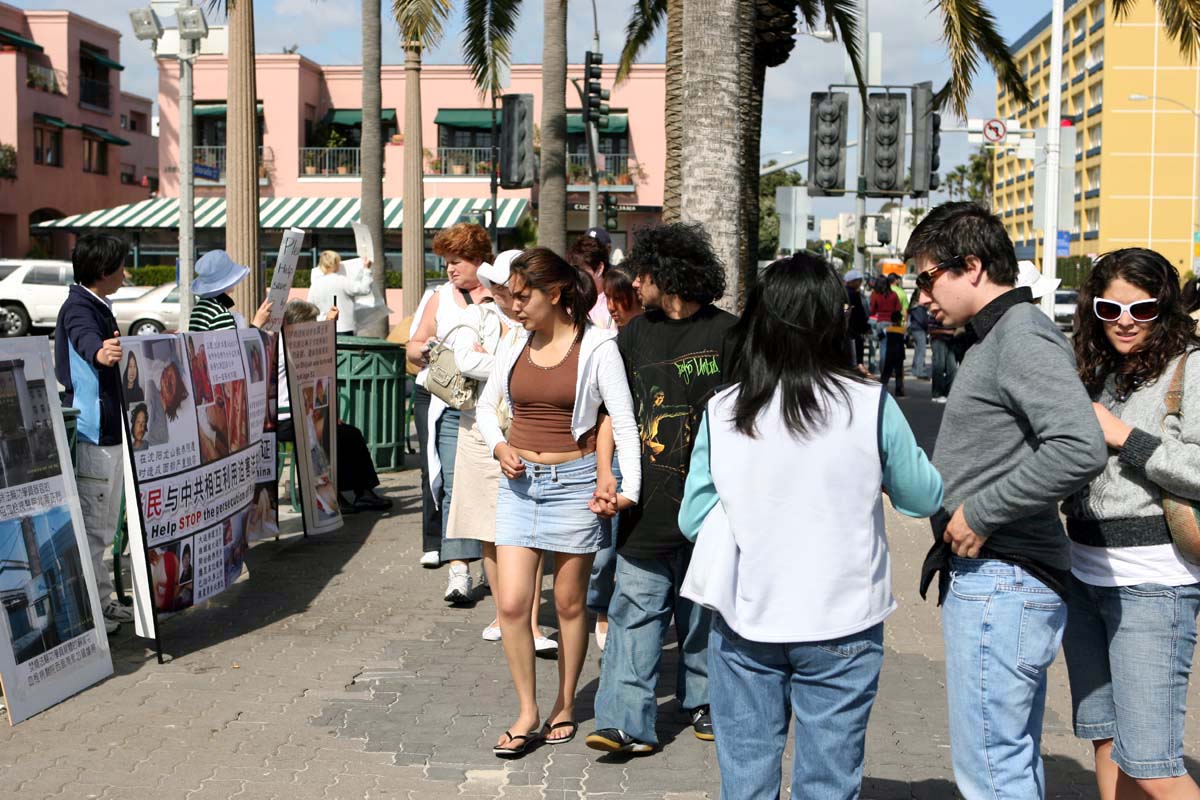 圣塔摩尼卡海边周末及假日一向游客来往如织。3月初沈阳苏家屯地下集中营关押大量法轮功学员进行活体摘除器官出售,由证人举证在国际社会曝光后,中共已将集中营秘密转移并加紧时间大量进行器官移植手术,在屠杀受害人证的同时继续谋取血腥暴利。为制止此再一次的屠杀行为,西部学员9日在海边举办讲清真相征求签名活动,各地来此的游客皆难以置信的中共竟如此惨无人道。