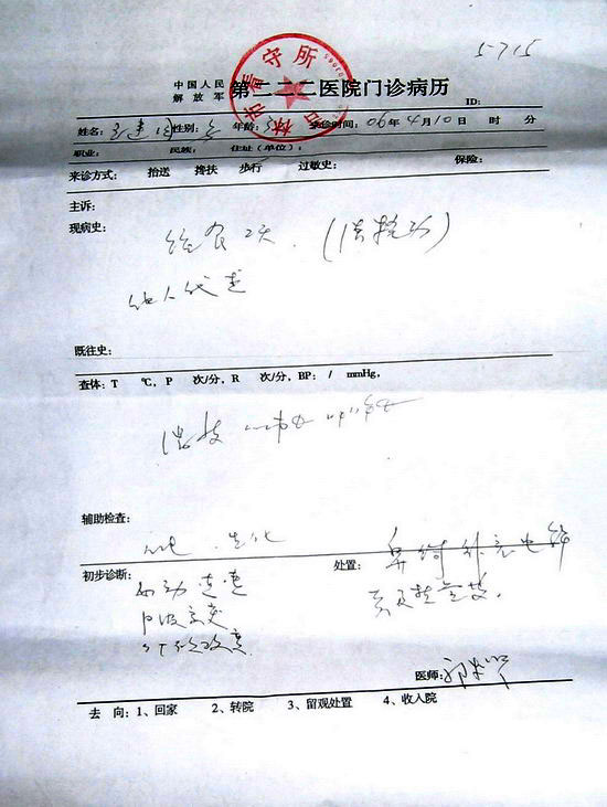 来诊时间:2006年4月10日15时58分 来诊方式:抬送