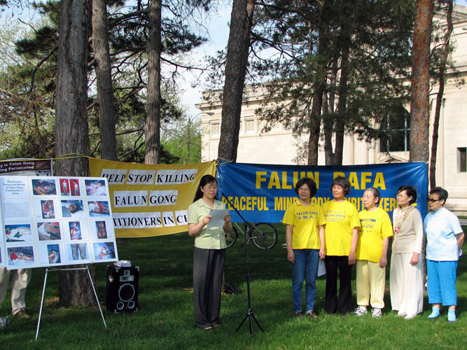 60岁的毛女士在新闻发布会上说,“我参加这次汽车之旅,是因为我面对这场最残暴的灭绝性屠杀无法保持沉默。江××与中共相互利用迫害法轮功已经快7年了。7年中,在人们的沉默、犹豫和冷漠中,数以千万计的法轮功学员因坚守‘真善忍’的信仰,而遭受历史上最残暴的灭绝屠杀。这场屠杀已经远远不是一个迫害信仰与人权的问题,它在拷问着每个人的灵魂,刻不容缓的要求每个人、每个政府,在利益与良知之间作出选择。这个选择,也终将决定每个人、每个政府的命运。”布什总统即将与中共领导人会面,毛女士呼吁布什向中共领导人提出以下两点:“1、要求中共立即开放所有拘留法轮功学员的劳教所和监狱以接受国际调查;2、允许法轮功学员牵头组织的‘赴中国大陆全面调查法轮功受迫害真相调查团’前往中国,调查在中国迫害法轮功的真相。”