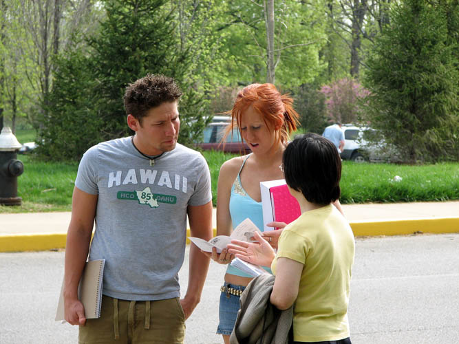 下午,美中汽车之旅到达印第安那州的州政府大楼并举行新闻发布会,印第安那WISH8新闻电视台的记者到现场采访。新闻发布会后,学员们在印第安纳布勒斯(Indianapolis)市中心继续发材料,向行人讲真相。