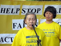 ![]() 圣路易市法轮功学员,73岁的康女士语带哽咽 |
