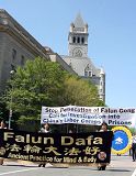 2006年4月18日中午,在中共党魁胡锦涛到达华府前夕,法轮功学员在华盛顿DC主要街道上举行大游行,揭露中共七年来对法轮功学员的残酷迫害;同时,呼吁国际社会支持并参与调查真相委员会赴中国调查在中共劳教所和监狱迫害法轮功学员的种种暴行,并帮助结束这场迫害。