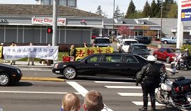 胡抵西雅图 法轮功吁制止迫害法办元凶(图)