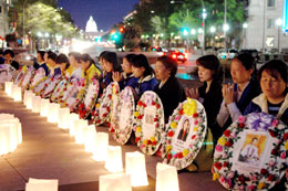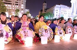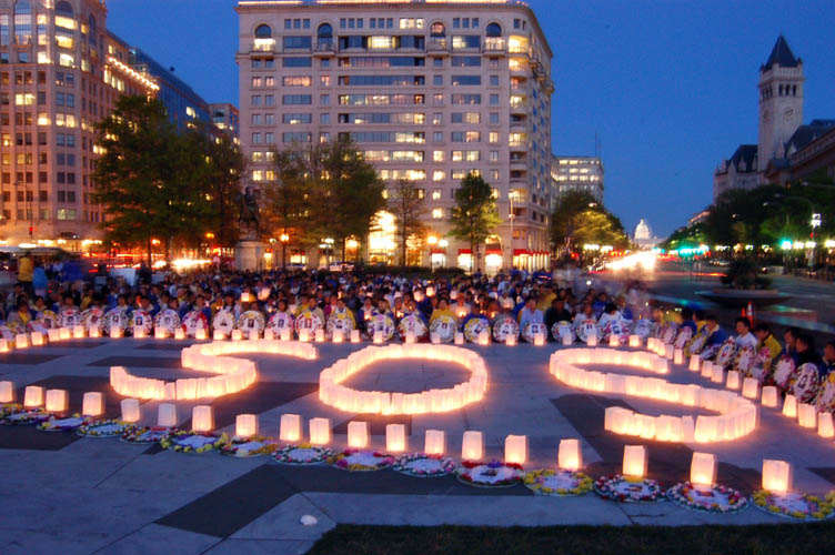 今天,来自全球的大法弟子在这里点燃蜡烛,点燃泪水,点燃深深的哀痛。
