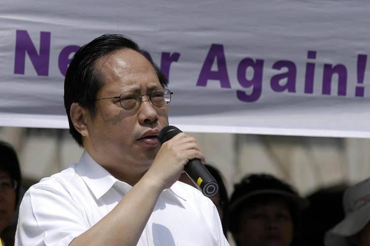 ![]() 香港支联会主席司徒华在集会上发言,谴责中共暴行。 |