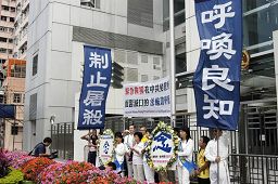 在游行前的集会上,香港法轮佛学会发言人简鸿章指出,近期揭露的中共集中营摘卖活体器官惨案,说明6年多来法轮功学员汇集的大量第一手迫害案情,只是中共迫害法轮功学员真相的冰山一角,更多的黑幕一直隐藏在中国劳教所等关押场地,还未揭发出来。法轮功学员呼吁国际社会谴责中共的暴行,并支持派出调查团进入中国大陆进行全面独立的调查。他们还要求中共当局无条件的配合调查。
