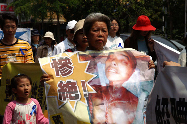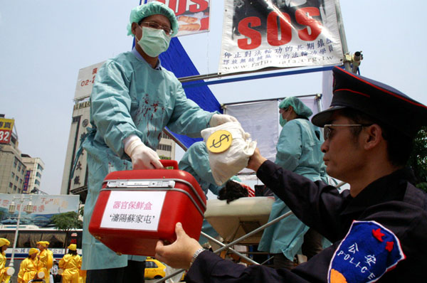![]() 游行队伍曝光中共取活人器官事件,民众十分震惊 |