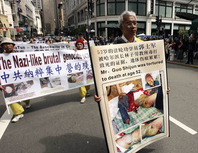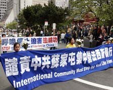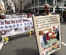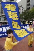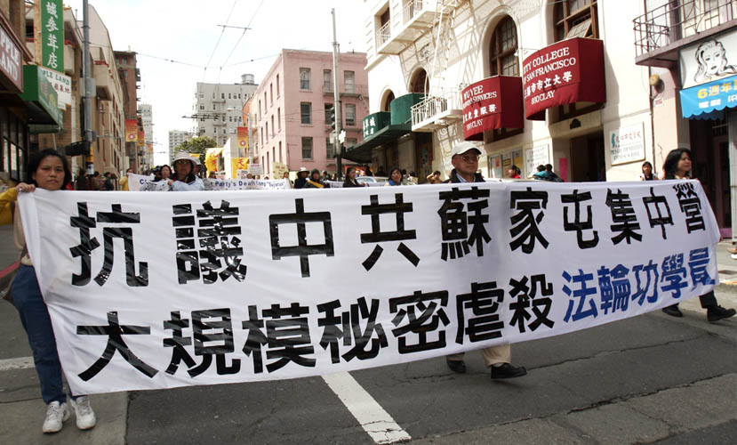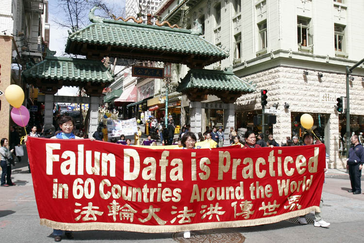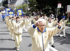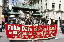 【明慧网二零零六年四月二日】(明慧记者黄凯莉旧金山报导)旧金山大游行曝光中共集中营 吁终止迫害——2006年4月1日,法轮功学员在旧金山市举行浩大游行,向旧金山市民,尤其是唐人街的民众揭露中共6年多来对法轮功学员的残酷虐杀,特别是最近被揭露出来的苏家屯集中营灭绝人性、活体取器官售卖的特大罪恶;在谴责中共暴行的同时,法轮功学员呼唤正义良知,共同终止迫害。