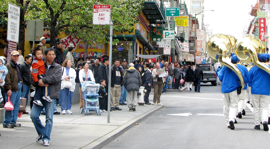 游行结束后,部份法轮功学员们继续在联合广场举办集会和征签活动,而天国乐团与另一部份法轮功学员则移驾至位于旧金山富人区的新中国城进行第二个游行,让更多的旧金山民众了解法轮功是什么,及揭露中共残酷迫害,呼吁伸出援手,制止迫害。同日下午的这第二个游行同样给许多人带来喜悦、带来震撼,取得了震撼人心的效果。