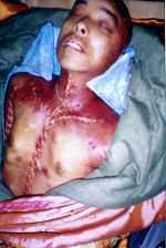 ![]() 伤痕累累的王斌的遗体,内脏被野蛮摘除 |