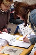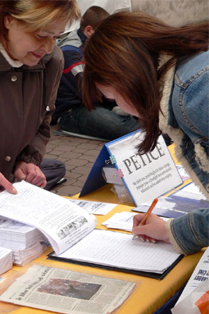 ![]() 认真了解真相的民众 | ![]() 民众签名抗议迫害 |