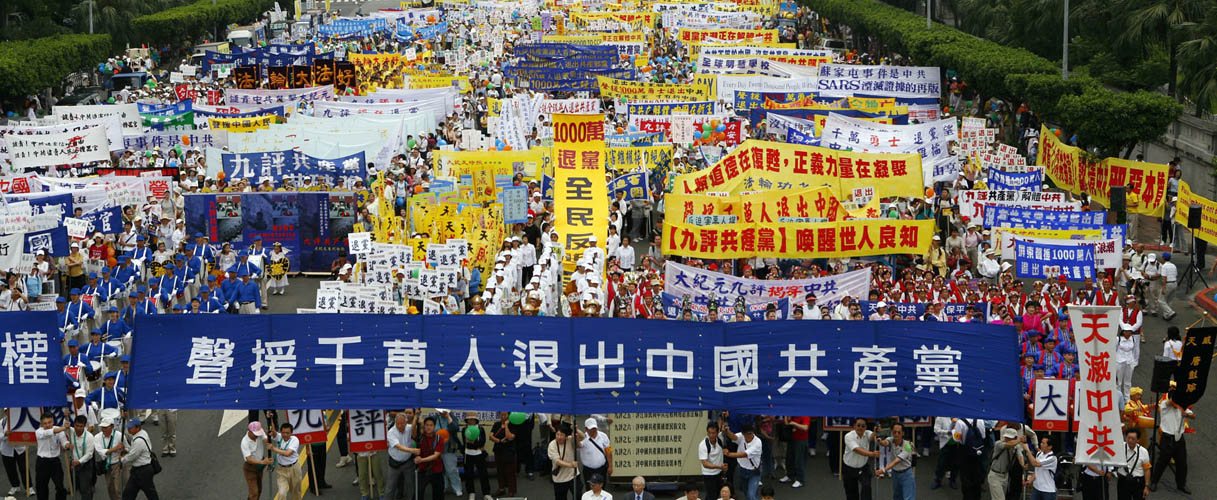![]() 声援千万人退出中共大游行,吸引台湾各界1万5千名民众参与 |