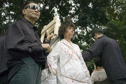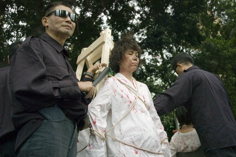 ![]() 沿街演示中共残酷迫害法轮功学员的酷刑 |