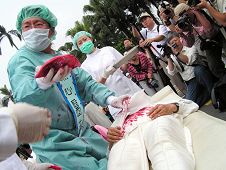 游行开始,器官移植行动剧主场移置货车上,作为前导。