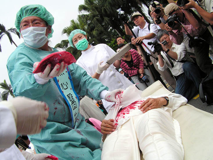 为了让广大民众深刻了解盗取器官的黑幕,法轮功学员在行动剧中,强忍悲愤扮演摘取器官的医师、中介商人、邪恶的公安等负面角色。演出前,一位扮演公安的法轮功学员说,心里真的很沉闷,平时作为一个修炼人,想尽办法做好人都来不及了,今天却要来扮演这样的事。
