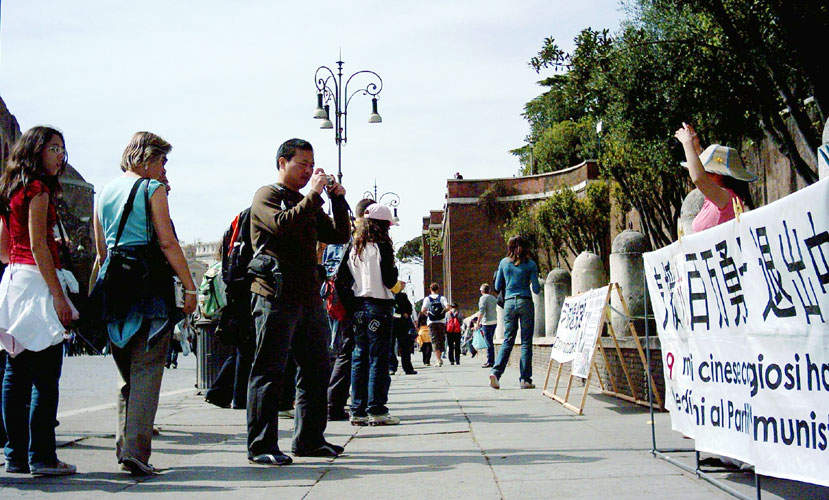 罗马学员总理府前揭露中共兽行(图)