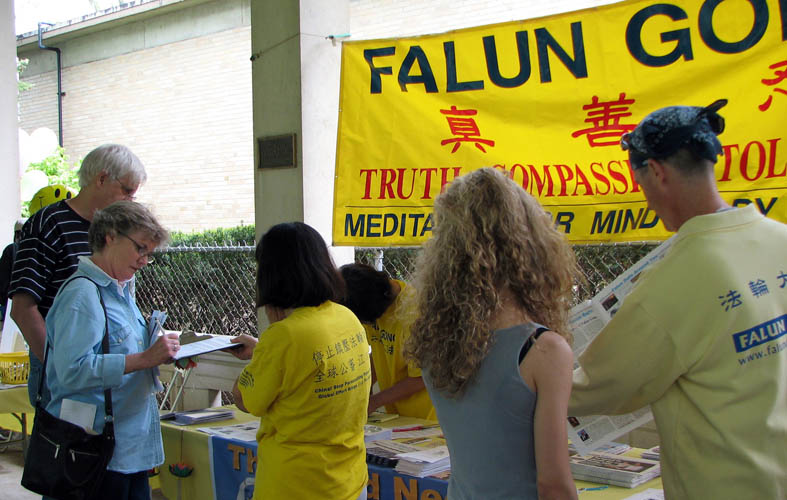 活动在傍晚时分结束,学员们准备的有关真相资料早已发放一空,写满名字的签名表带着善良的美国民众对法轮功的支持和对中共的谴责,将被寄给美国总统、议员和相关政府部门。