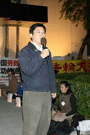 大纪元洛杉矶分社代表王清华在集会上呼吁国际社会关注中共掩盖劳教所活体摘除法轮功学员器官的罪恶,指出“大纪元希望国际能够及时阻止这场对善良民众最惨烈的灭绝。我们认为容忍和漠视这场罪恶是对人类人格真正的侮辱。”
