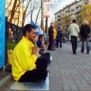 纪念“4.25” 乌克兰学员中使馆前抗议迫害(图)
