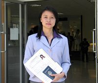 2006年4月27日下午约2点,“调查真相调查团”调查员,新唐人电视台旧金山记者张芬,为索取前往中国大陆调查法轮功学员受迫害的签证,再次来到中共驻旧金山总领事馆。