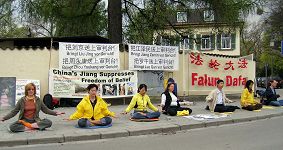 2006年4月25日,乌克兰法轮功学员在中国驻乌使馆前举行活动,纪念七年前发生在北京的“4.25”万人和平上访事件,并抗议中共的迫害。