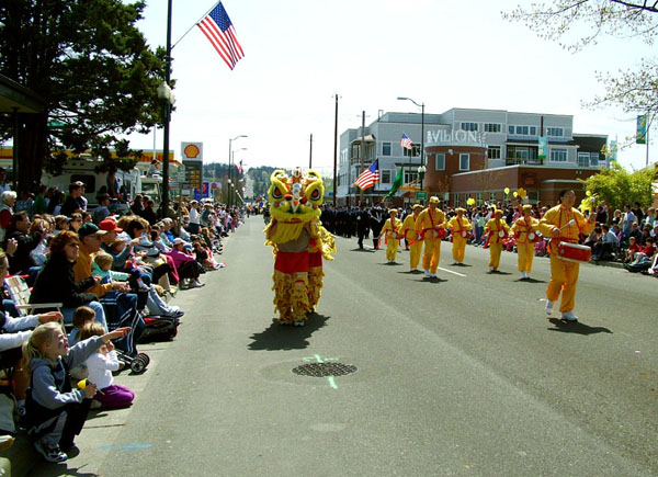此时的华州,春暖花开,处处可见金灿灿的水仙花和淡粉色的樱花,且当日阳光格外明媚,因此观众也比往年多很多。游行从早上10点开始,在华州南部的Tacoma,Puyallup,Orting,和Sumner 4个城市相继举行,直至傍晚7点结束。