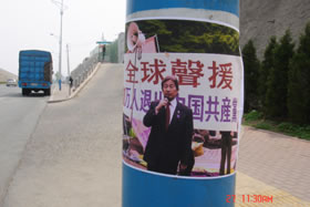 2006年4月26日凌晨5点左右,吉林抚松县某镇通往火车站的跨河大桥上展开了一个约15米的巨大条幅,白底黑字的写着“退党一千万 敲响共产邪党的丧钟”。