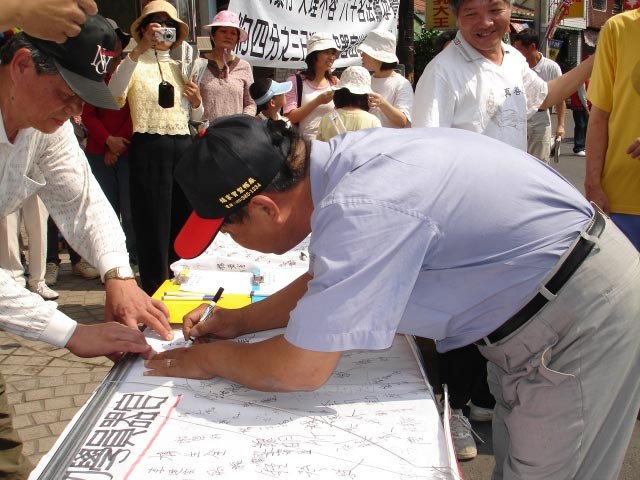 ![]() 立法委员郑朝明强烈谴责苏家屯活体摘除法轮功学员器官案,他表示,做出这种惨绝人寰勾当的中共,一定会招天谴 | ![]() 万丹乡民代表郑玉媛、万安村长黄文忠签名谴责苏家屯案 |