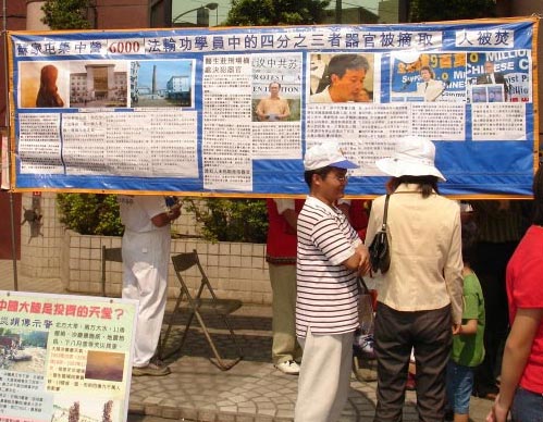 声援活动挂出“SOS紧急抢救数千法轮功学员遭中共盗卖器官”横幅,令来往行人十分震惊,表示这种事情在台湾是不可能发生的,并签名声援法轮功。一位年轻的母亲得知后,表示这件事情太可怕了!谁敢去大陆?!逛街的学生表示,这件事情太不人道!太残忍,中共竟然把活人这样对待,简直不把人当回事!