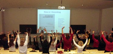 最后,几乎所有的与会者学炼了第一套功法—佛展千手法。报告会在祥和及严肃的气氛中结束,与会者那持续了近两分钟有节奏的掌声,表达人们了解大法后的心情。主持人在会后也再三感谢法轮功学员的到来。