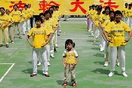 ![]() 元宵节灯会随处可见“法轮大法好 真善忍”的气球 | ![]() 安溪国小校庆展示功法 |