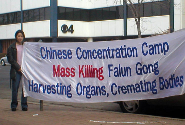 学员们打出的大横幅有:“中共集中营-大规模屠杀法轮功-摘取人体器官-焚烧尸体”,“声援九百万人退出中共”。许多路过的车辆鸣笛支持,有很多人摇下车窗索取传单。一位中国女士特意前来索取传单,并对学员说,她知道中共迫害中国人有多可怕。