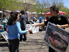 美国科罗拉多州大法弟子4月24日这星期在一些大学校园内向数千人讲述了法轮功被迫害的真相。