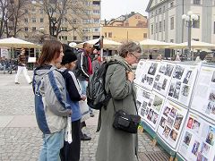 2006年4月29日,在斯德哥尔摩市中心公民广场,瑞典的退党服务中心、人权组织SHRIC、大纪元义工和法轮功学员,举行声援1000万人退出中共和抗议中共虐杀法轮功学员、活体盗取器官、焚尸灭迹的暴行的活动。