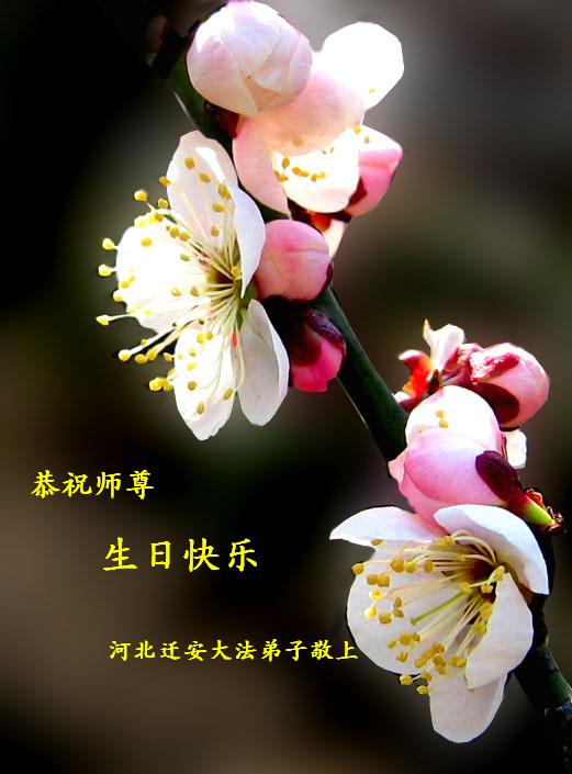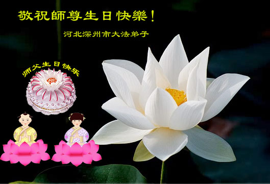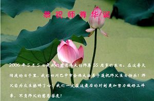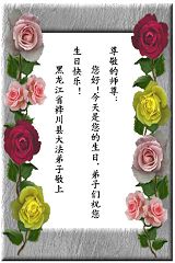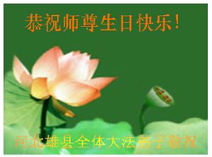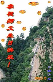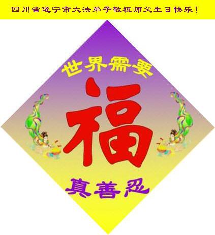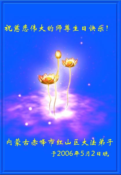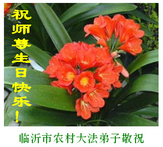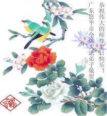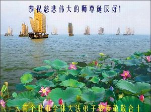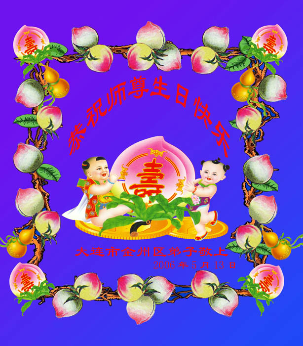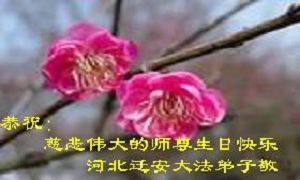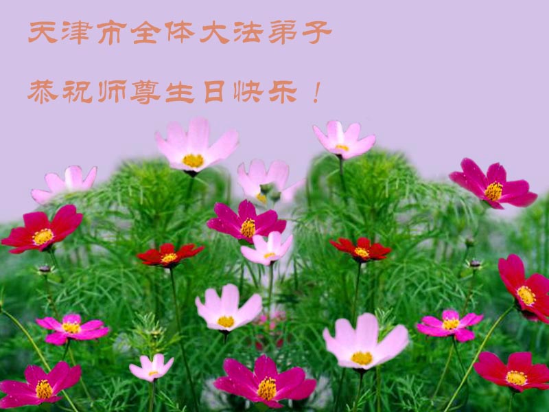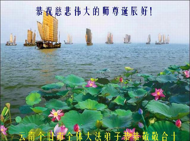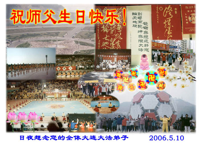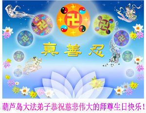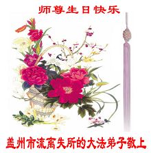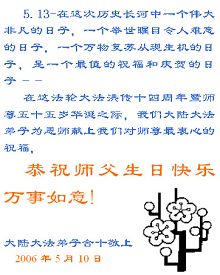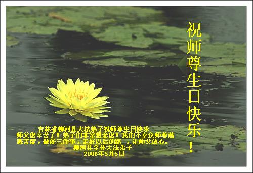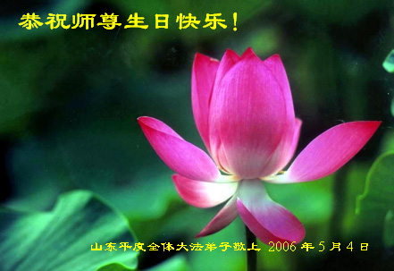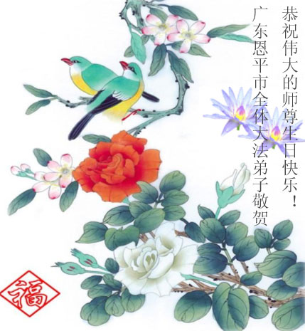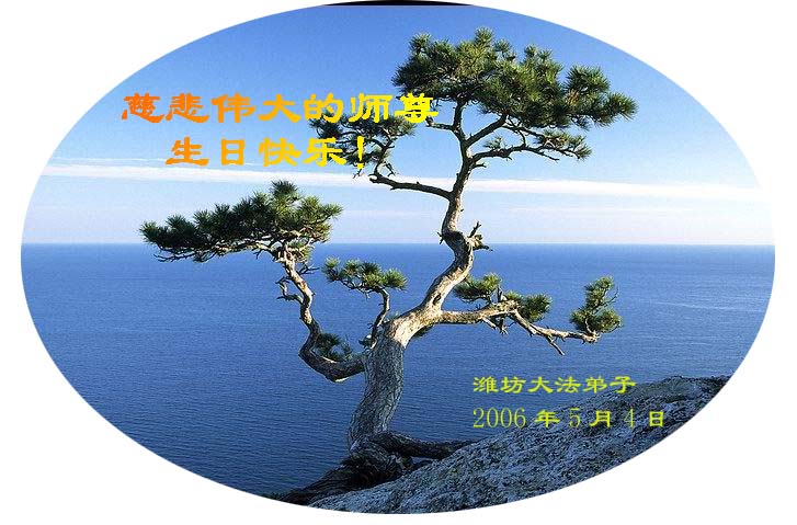 在这法轮大法洪传十四周年暨师尊五十五华诞之际,我们大陆大法弟子为恩师献上我们对师尊最衷心的祝福,恭祝师父生日快乐!万事如意!