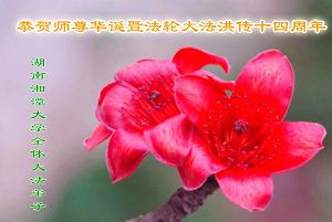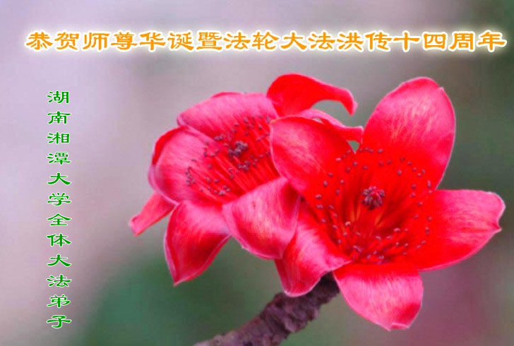 在普天同庆513世界法轮大法洪传十四周年的伟大时刻,我们湘潭大学全体大法弟子向慈悲伟大的师尊致以最崇高的敬意,恭祝师尊55华诞。师父生日快乐。