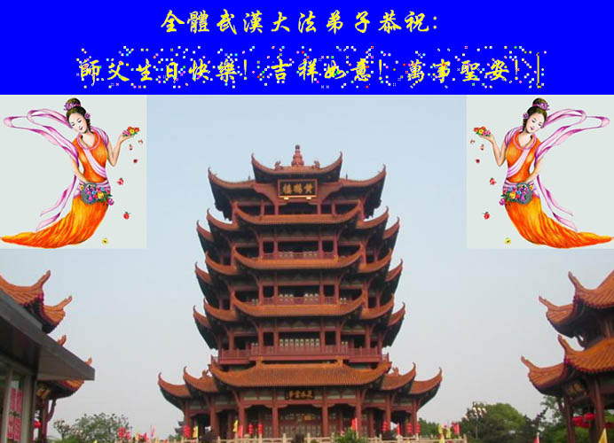 湖北省天门市竟陵、岳口、皂市、彭市、乾一、121工厂、九真、蒋湖、渔薪、新堰、佛指山等城乡地区的所有大法弟子恭祝慈悲伟大的师尊生日快乐!