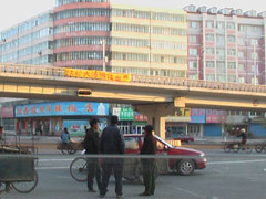 【明慧网2006年5月13日】东北某市在世界法轮大法日到来之际,市内四处可见悬挂的大法真相条幅和标语。