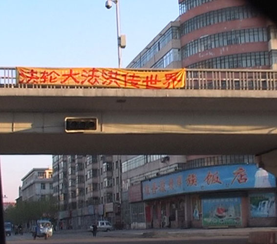 大庆市繁华地区的“法轮大法好”条幅
