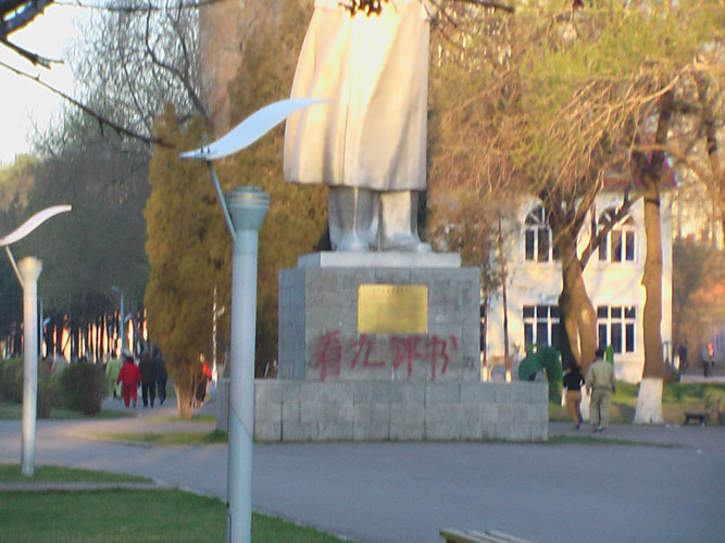 毛像下的标语:“看九评”